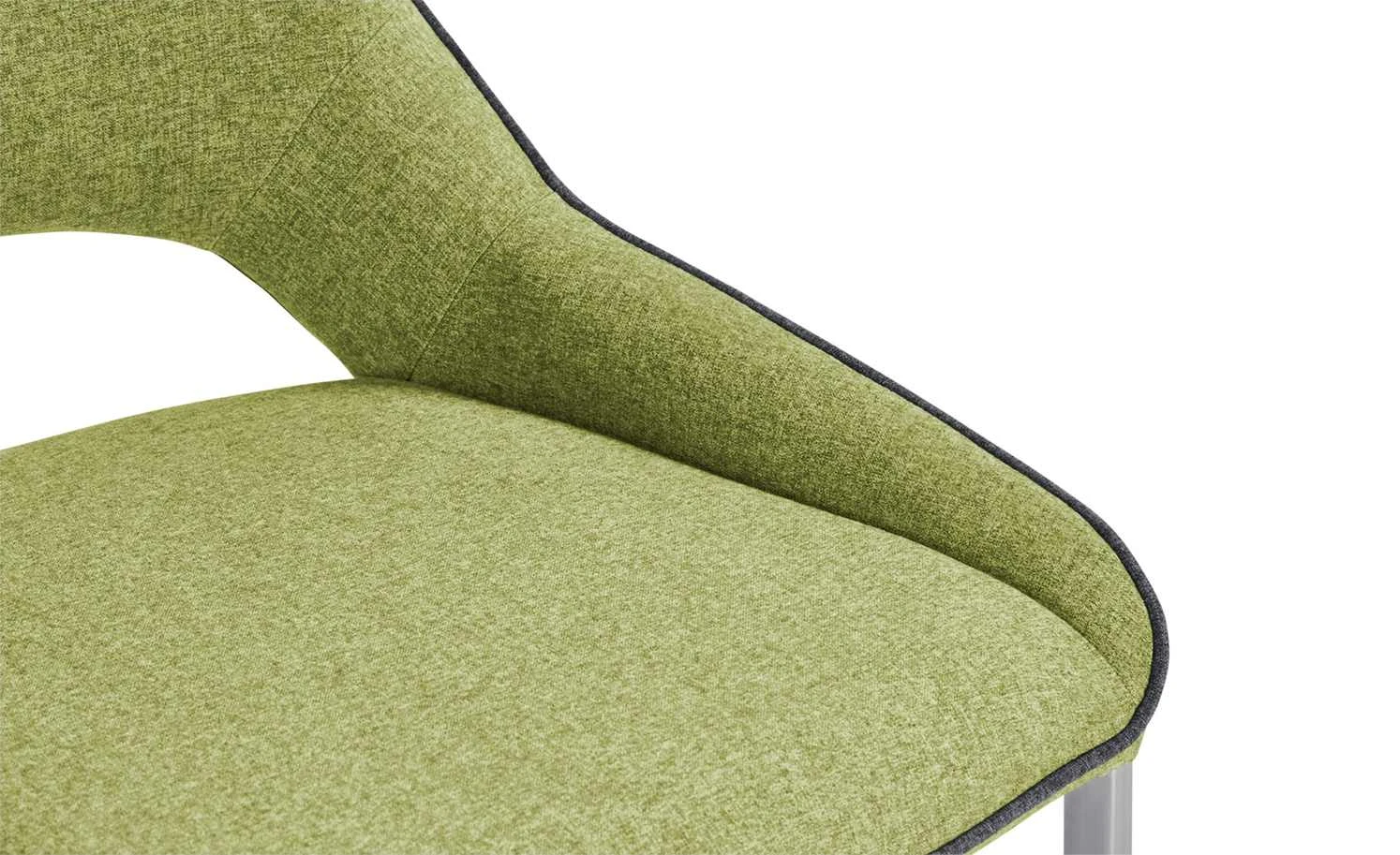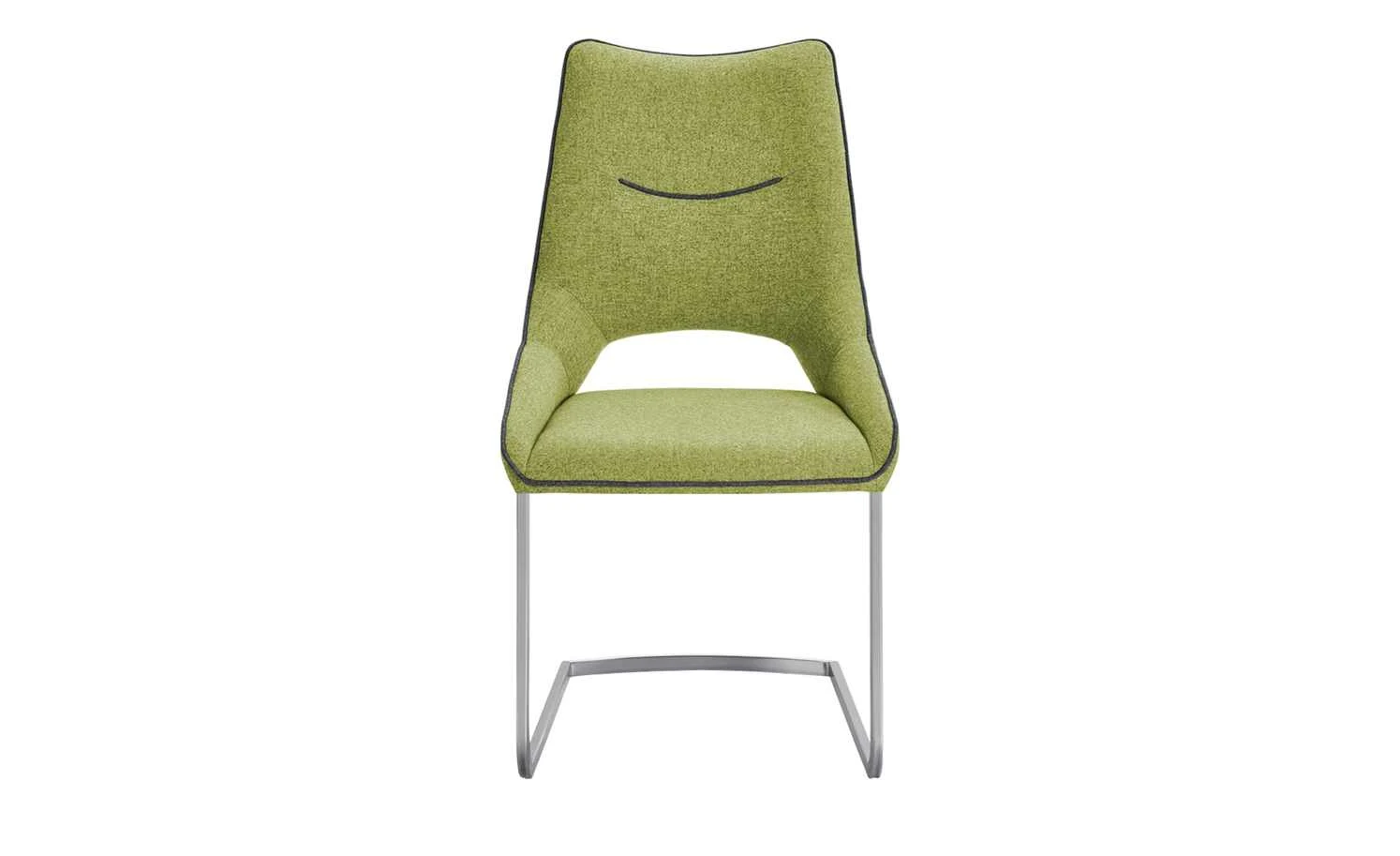 Der Schwingstuhl Lenira bringt ein junges, modernes Design an den Esstisch. Die hohe Rückenlehne ist im unteren Bereich offen designt – und geht seitlich in den Sitzbereich über. Eine dekorative Quernaht befindet sich an Vorder- und Rückseite der Lehne. Ihre geschwungen Optik greift den schwungvollen Look des oberen Lehnenrandes auf. Der ganze Sitz- und Rückenbereich wird zudem von einem Keder umrandet. Er setzt sich dezent vom melierten Webstoffbezug ab. Lenira ist weich gepoltert, damit Sie es beim Essen richtig bequem haben.