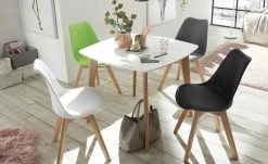 Mit seinem skandinavischen Trenddesign ist der Stuhl Charly eine Bereicherung für Essbereich oder Küche. Die Sitzschale besteht aus stabilem Kunststoff. Für den Komfort ist der Sitzbereich weich gepolstert. Der Bezug des Sitzkissens ist mit robustem Kunstleder bezogen, dass die Farbe der Sitzschale perfekt aufgreift. Für den optimalen Stand sorgt das 4-Fußgesell aus massiver Buche. Das Holz stellt einen natürlichen Kontrast zur Sitzschale dar.