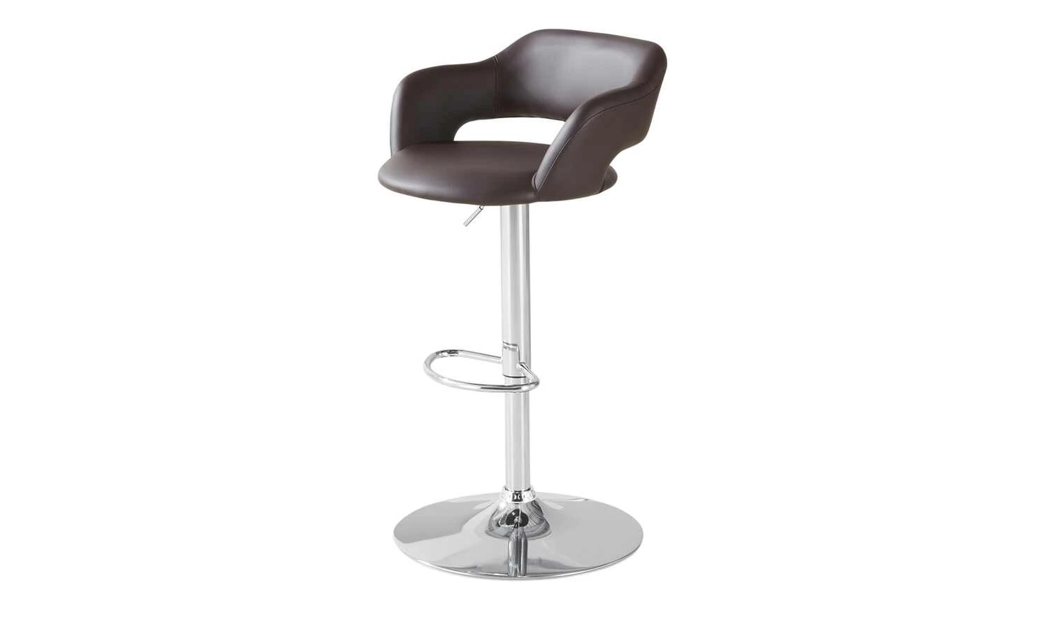 Auf dem Barhocker mit Lift Hektor können die Gäste an Ihrer Bar gepflegt ihre Cocktails genießen oder die Schätze aus Ihrem Weinkeller begutachten. Er besteht aus einem glänzenden Gestell mit einer komfortablen Fußstütze. Sein runder Standfuß unterstreicht das klassische Bardesign. Die Sitzfläche in Kunstleder bildet optisch mit den niedrigen Arm- und Rückenlehnen eine harmonische Einheit. Der Lift des Tresenhockers wird mittels eines Hebels unter dem Sitz betätigt. So können Sie ihn bequem auf die richtige Höhe einstellen. Sowohl für gemütliche Abenden an der Kellerbar als auch an der Küchentheke kann der Barstuhl eine aparte Bereicherung Ihrer Wohnungseinrichtung sein.