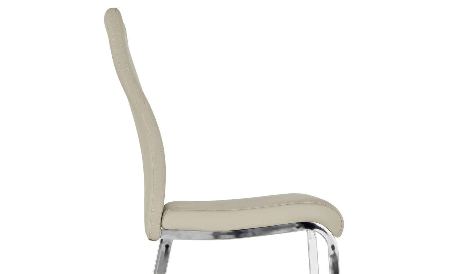 Dean ist ein bequemer Stuhl von uno. Sitz und Rücken sind mit Kaltschaum gepolstert und mit Kunstleder bezogen. Der Bezug hat einen dekorativen beigen Farbton. Er wird vom verchromten Metallgestell abgesetzt. Es sorgt gleichzeitig für einen soliden Stand.